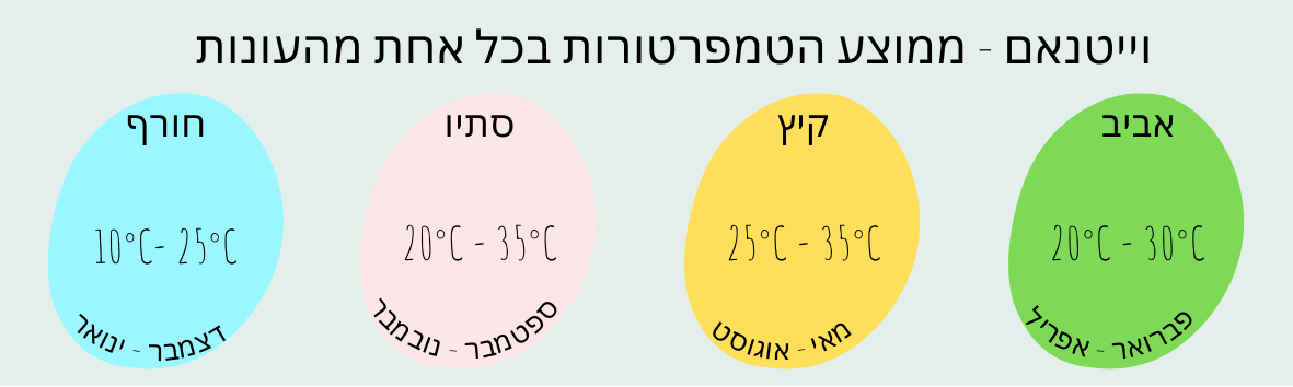 הנה מאמר שלם המסביר מתי הכי כדאי לבקר בוייטנאם, ואיפה כדאי לטייל בהתאם לעונות השנה…
