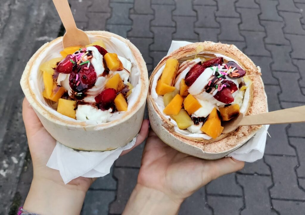בכל מיני מקומות (באיים, בצ’יאנג מאי, בבנגקוק), תוכלו למצוא דוכנים קטנים המגישים גלידה בתוך קוקוס טרי, עם תוספות של פירות טריים ובוטנים. זו חוויה מרעננת ומיוחדת לילדים ולמבוגרים כאחד.